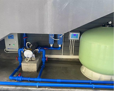 2022年:有泳池(面積:557m3)循環(huán)方式:順流式, 消毒方式:紫外線(xiàn)+氯消毒;主設(shè)備:澳洲瑞凱、ESPA亞士霸 加熱設(shè)備:芬尼克茲